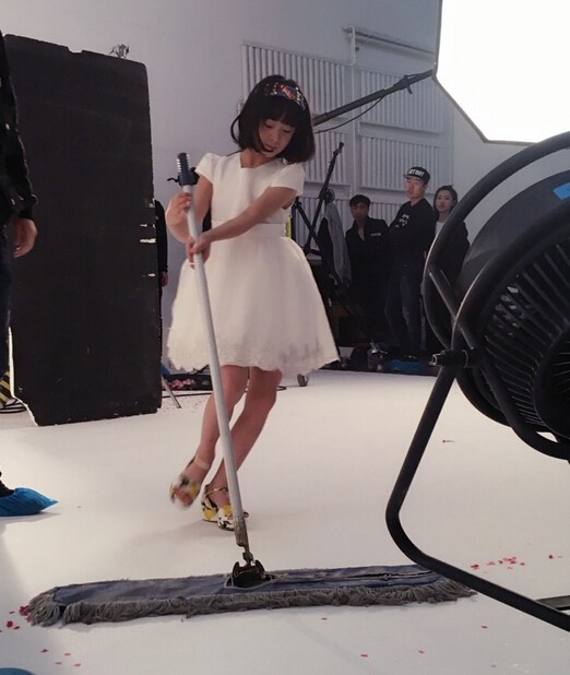 勤劳的小蜜蜂!森碟穿白色公主裙拖地(组图 )