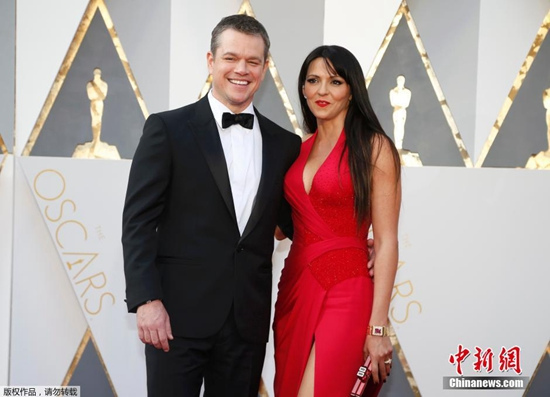 马特·达蒙与妻子亮相奥斯卡红毯。