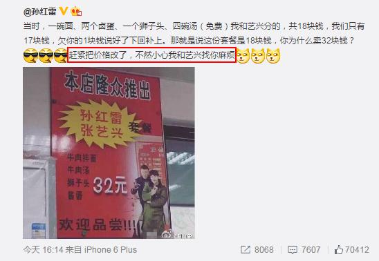不改价我们就找你麻烦 孙红雷因18块质问面馆(图)
