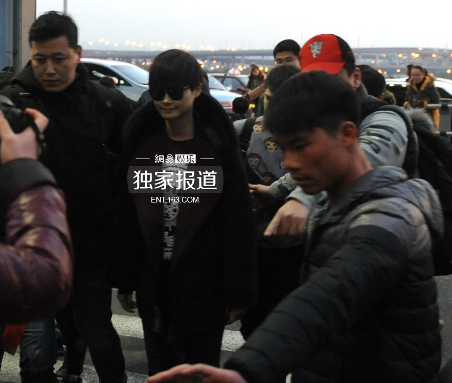 近日李宇春因公到沪,久未露面的她行踪自然被专业粉丝摸透。人还未露面粉丝就认出她的座驾可想而知前线情报可靠到位。下车之后一身黑色系打扮的李宇春在保镖的护送下从人群中挤出一路前往安检口。(图文/105工作室)