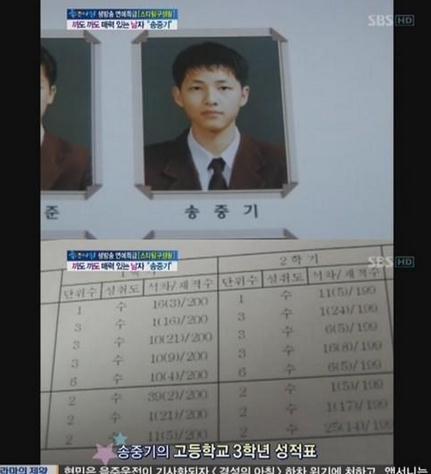 宋仲基因为当兵离开演艺圈2年,近日接拍《太阳的后裔》后,人气瞬间回升,更凭着该剧收获大批少女的心,而他大学时期就读成均馆大学,是韩国当地数一数二的一流学校,高材生的名号为众人所皆知,近日在SBS节目《早安》当中,也公开了他就读大田高中时期的成绩单。