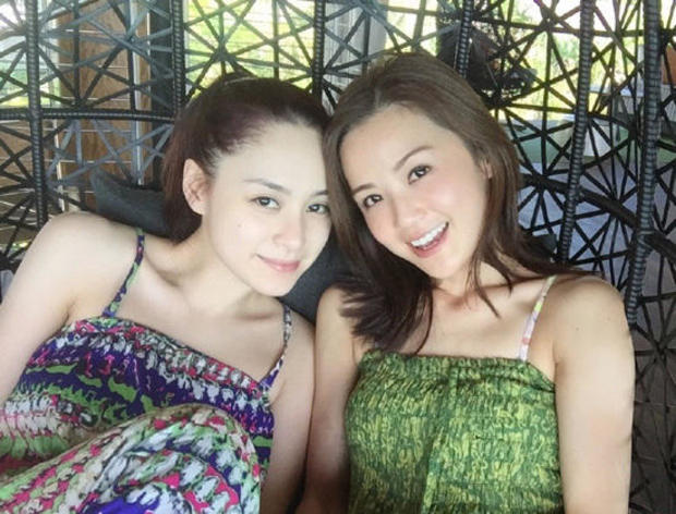 另外,阿娇于微博上载了穿泳衣在泳池畅泳的照片,她留言:“为了在水中拍照,连水都不怕了。”另一张相则看见阿娇露事业线与阿Sa合照。