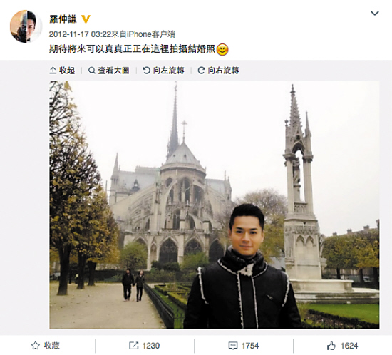 据了解,该城堡是位于英国肯特郡的利兹城堡,这里曾是英国王室的乡间别墅,历代新任国王都将它送给王后。这里风景优美,充满浪漫气息,因此成为拍婚纱照的热门胜地。2012年,罗仲谦随《冲上云霄2》剧组前往英国出外景时,就曾经在微博上传英国风景照,并配文:“期待将来可以真真正正在这里拍摄结婚照。”4年后,他终于梦想成真。