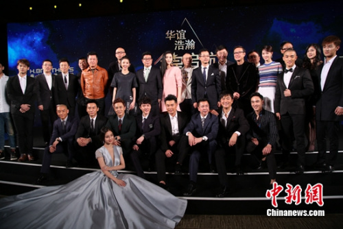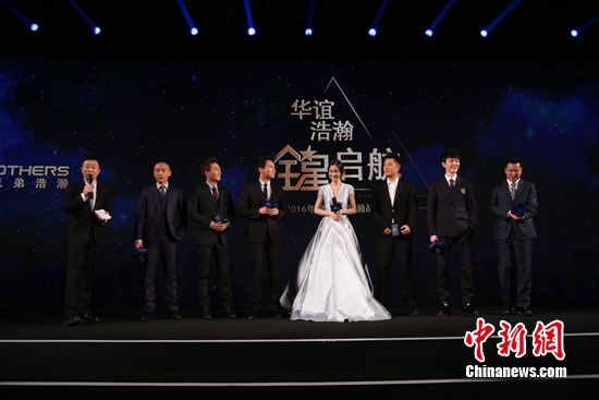 中新网北京3月27日电(记者 张曦) 27日下午,由华谊兄弟控股的华谊浩瀚在北京举办2016战略发布会,李晨、Angelababy、冯绍峰、杜淳、郑恺、陈赫六位明星股东携手亮相,范冰冰、阮经天、沈腾、郭敬明、赵宝刚、顾长卫、管虎、王晶、刘伟强、黄景瑜等明星也出席助阵。