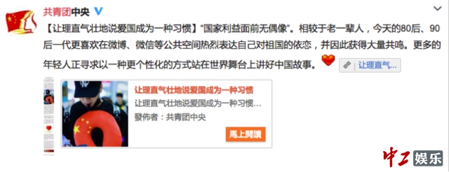 于是,连共青团中央官微都发了条微博称赞!王嘉尔就是特别耿直的在爱着自己的国家,因为自己是中国人而有着满满的骄傲感,让小编为这份赤子之心点赞!
