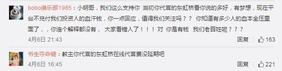 现在投资者无处诉苦,都聚集到了黄晓明的微博下。从评论中可以看到,很多投资者当初都是冲着黄晓明去的,感觉很可靠。除了黄晓明的粉丝外,受到损失的不乏在校学生和农民工。