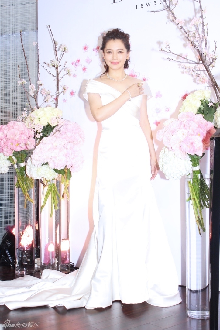 徐若瑄(Vivian)产后复出首次公开活动献给知名品牌珠宝展,她12日在台北出席记者会,身穿一袭雪白礼服、手戴超过70克拉的顶级黄钻戒指优雅亮相。