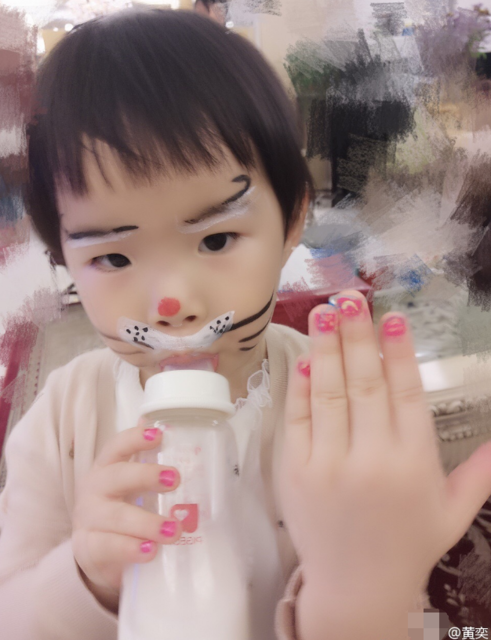 黄奕在微博晒出一组和女儿在一起的温馨照片,并附文称:“妈妈的杰作。”