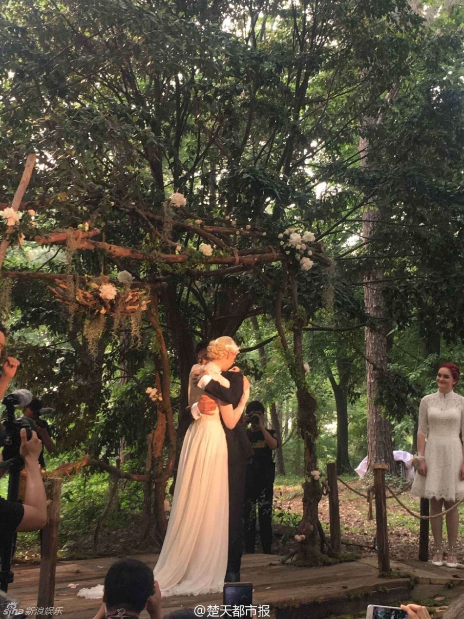撒贝宁一身西装武汉深拥热吻新娘李白(组图)