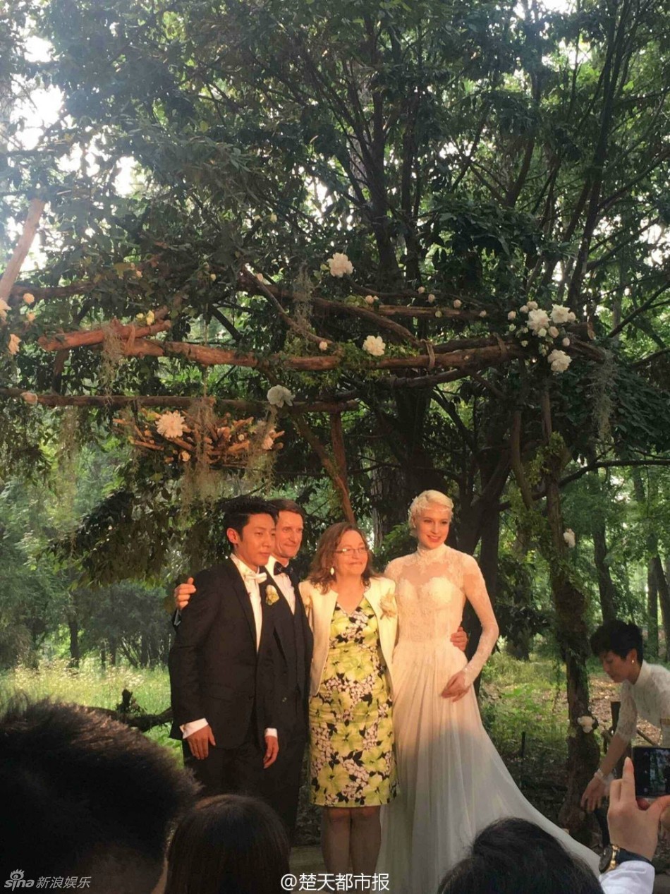 撒贝宁一身西装武汉深拥热吻新娘李白(组图)