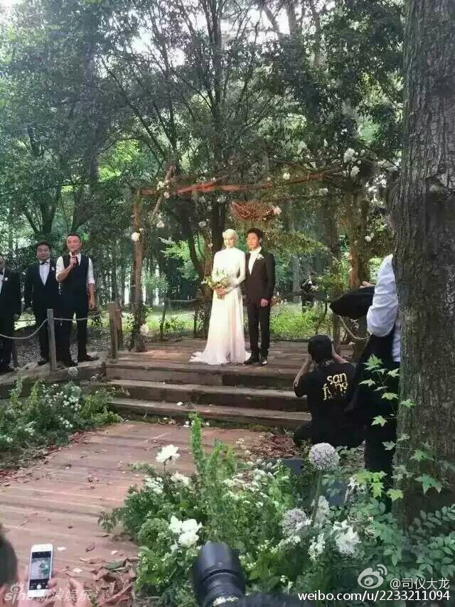 新浪娱乐讯 5月6日,撒贝宁、李白在武汉东湖梅园举行婚礼。撒贝宁一身帅气西装现身,新娘子李白穿婚纱身姿婀娜,两人深情拥吻,李白大露美背。