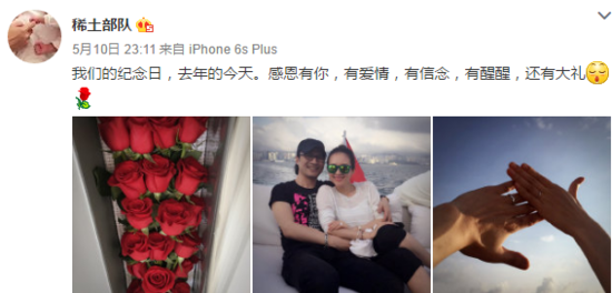 章子怡结婚纪念日晒大红玫瑰对戒 与汪峰相依相拥