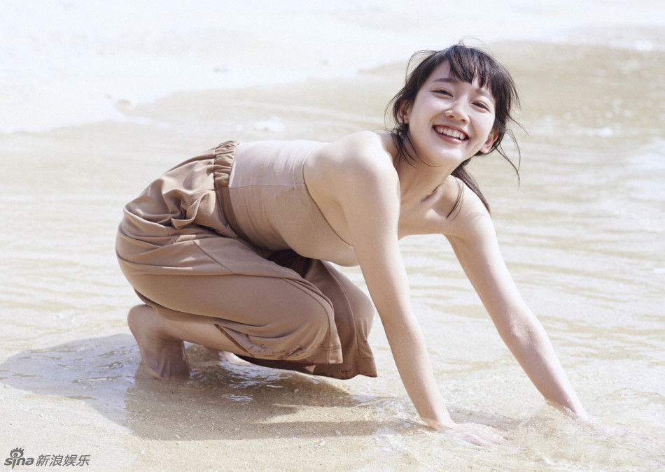日系女星:吉冈里帆沙滩性感写真 手拿黄色纱巾遮身