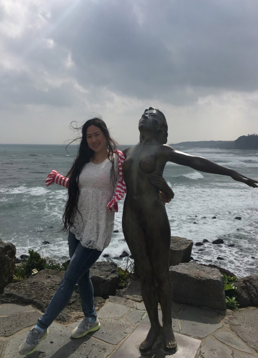 网易娱乐5月12日报道 今天,网络红人“芙蓉姐姐”晒出一组与海女雕像的合影。照片中,她大摆pose,与海女雕像比身材,红色bra隐现。
