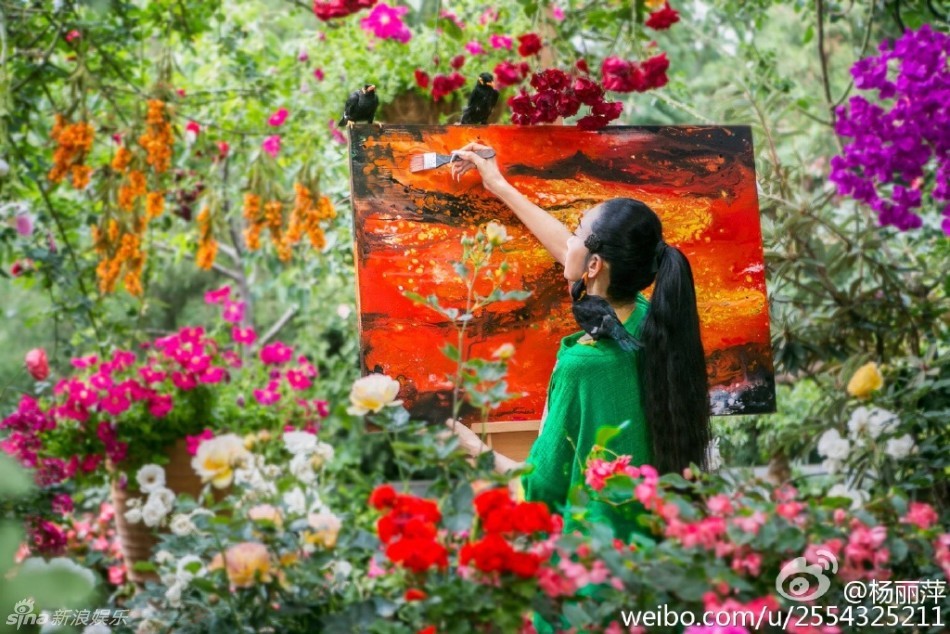 自带仙气儿!杨丽萍花园作画 鸟儿环绕身旁(高清组图)