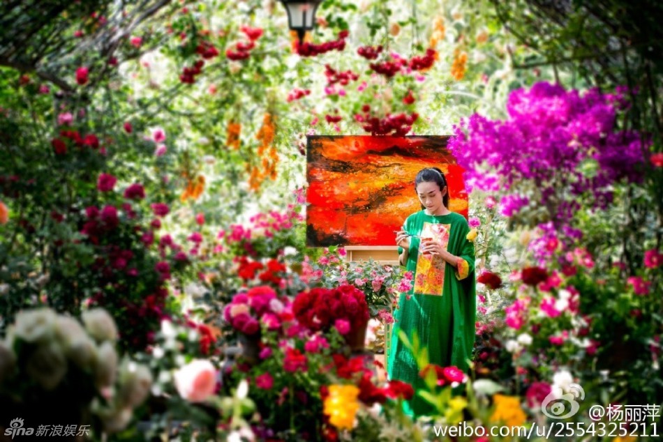 自带仙气儿!杨丽萍花园作画 鸟儿环绕身旁(高清组图)