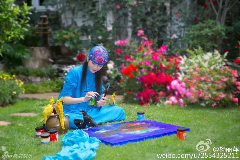 自带仙气儿!杨丽萍花园作画 鸟儿环绕身旁(高清组图)