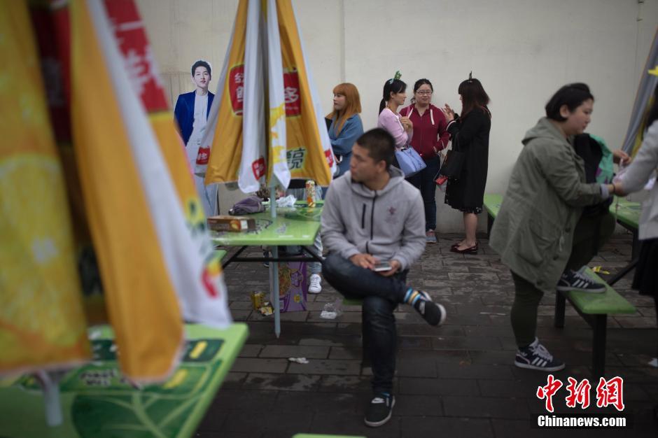 5月14日,北京站“2016宋仲基亚洲巡回粉丝见面会”在国家奥林匹克中心体育馆举行,韩国艺人宋仲基在见面会上与粉丝进行互动,引发粉丝阵阵尖叫。宋仲基还将奔赴武汉、广州、深圳、上海、香港、成都、台北,完成此次大中华区八座城市的粉丝见面会。图为一家商店以宋仲基图像吸引粉丝购买相关产品。中新社记者 刘关关 摄