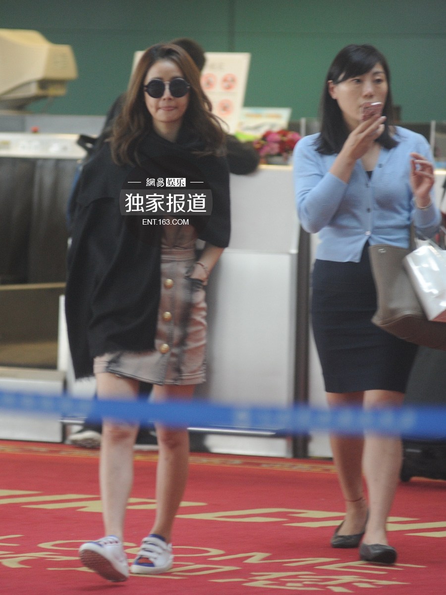 林心如黑超遮面现身机场 御姐范儿十足(组图)