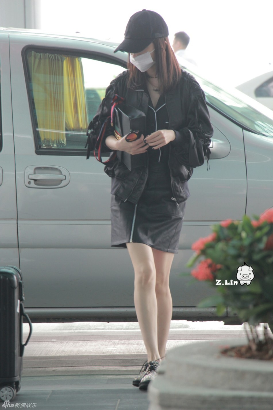 粉丝晒杨幂现身长沙机场路透图 一身黑露大美腿(组图)
