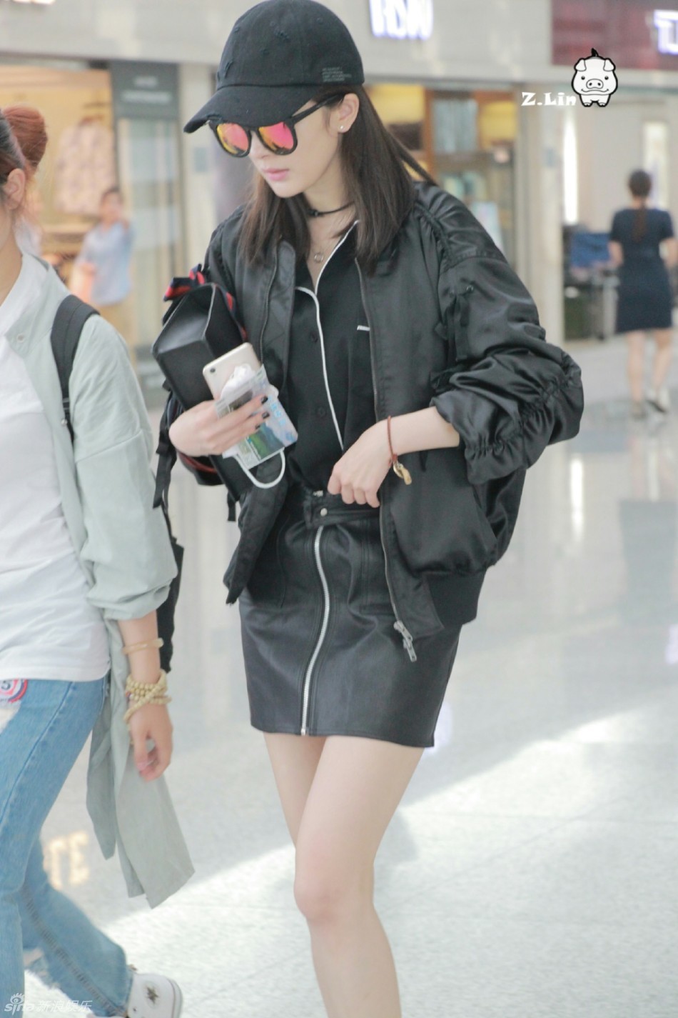 粉丝晒杨幂现身长沙机场路透图 一身黑露大美腿(组图)
