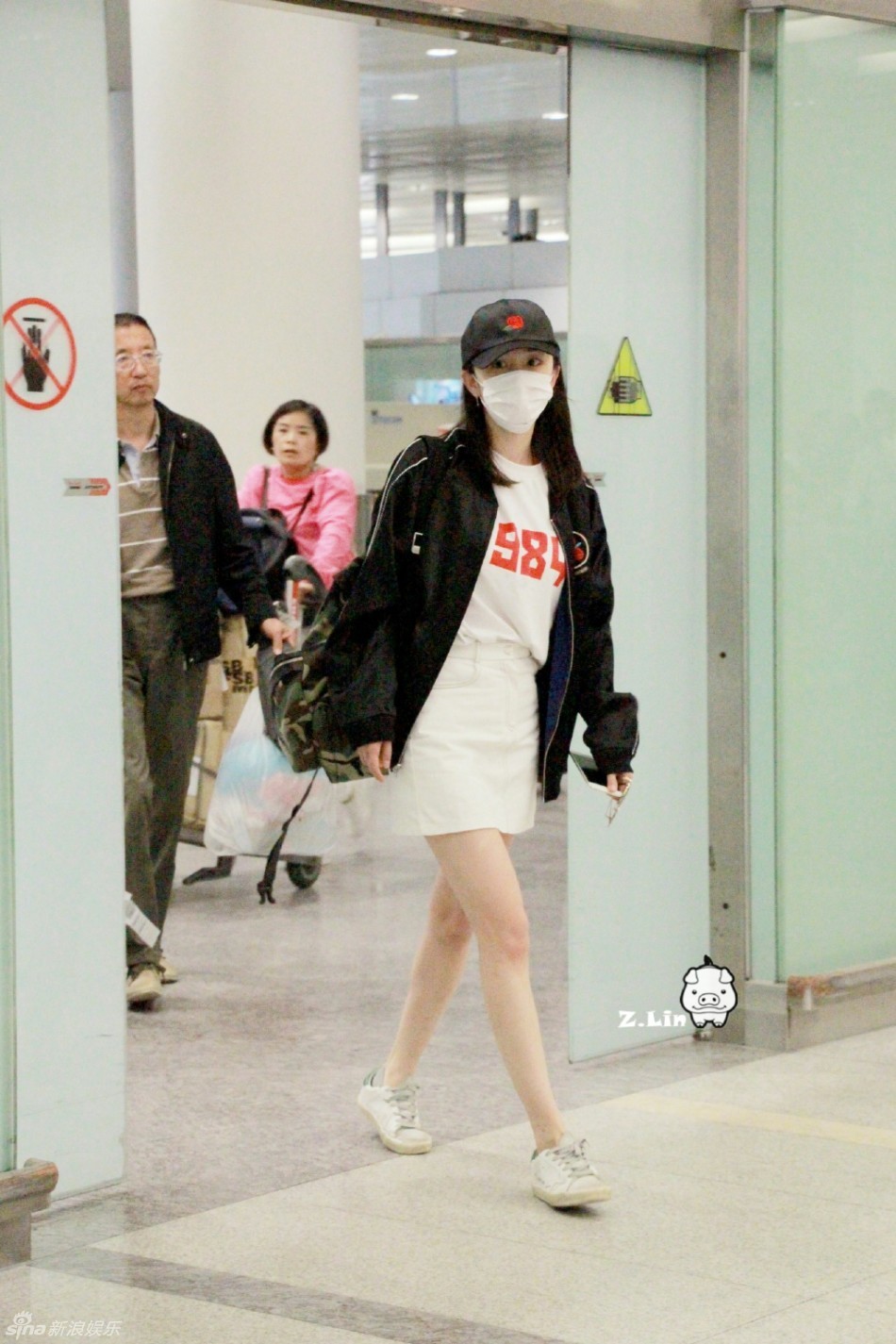 粉丝晒杨幂现身长沙机场路透图 一身黑露大美腿(组图)