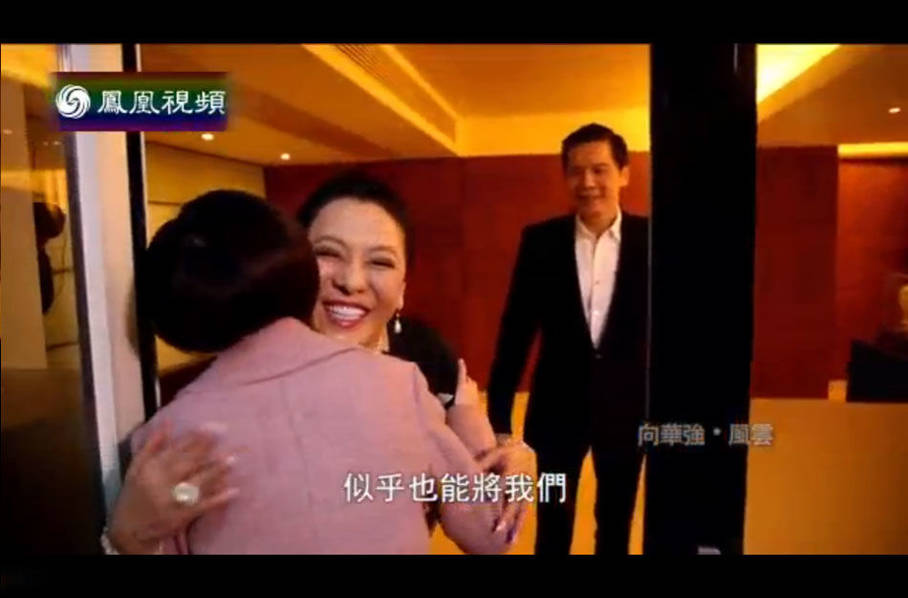 早前,向华强接受《鲁豫有约》采访,主持人鲁豫现身向华强位于香港的豪宅之中,在向太陈岚的介绍下,这栋五层的豪宅内景也首次曝光。豪宅室内的装潢维持著名美术指导张叔平19年前的设计,素雅而温馨。图为陈岚与鲁豫热情相拥。