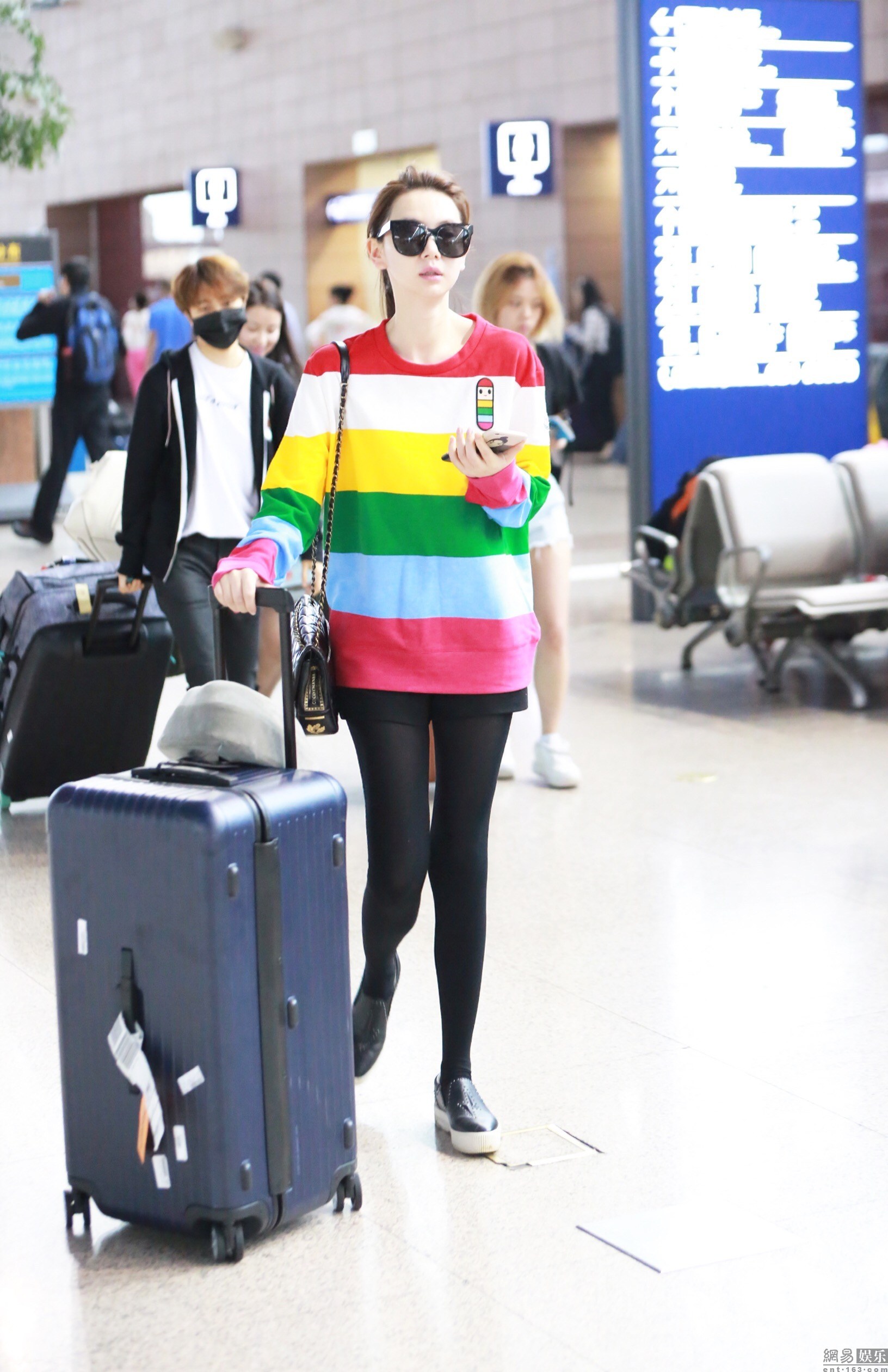 戚薇上海机场“彩虹”上身 嫩到犯规(组图)