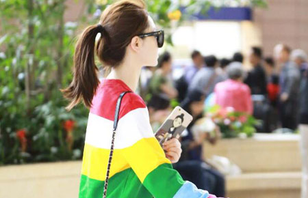 戚薇上海机场“彩虹”上身 嫩到犯规(组图)