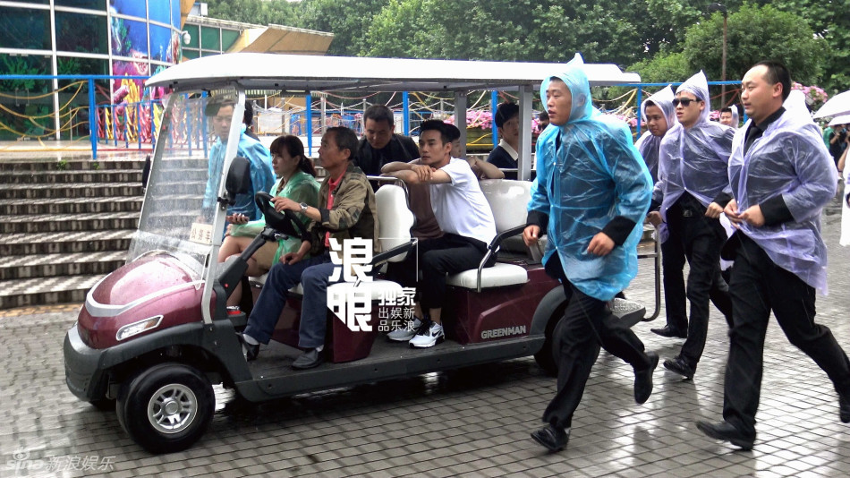 新浪娱乐讯 日前,王凯、王嘉尔、井柏然齐聚上海长风公园录制某综艺节目,然而场外由于不少粉丝围观,撤退过程中剧组却在瓢泼大雨中上演《奔跑吧!保安》。图文/文刀