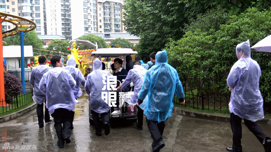 新浪娱乐讯 日前,王凯、王嘉尔、井柏然齐聚上海长风公园录制某综艺节目,然而场外由于不少粉丝围观,撤退过程中剧组却在瓢泼大雨中上演《奔跑吧!保安》。图文/文刀