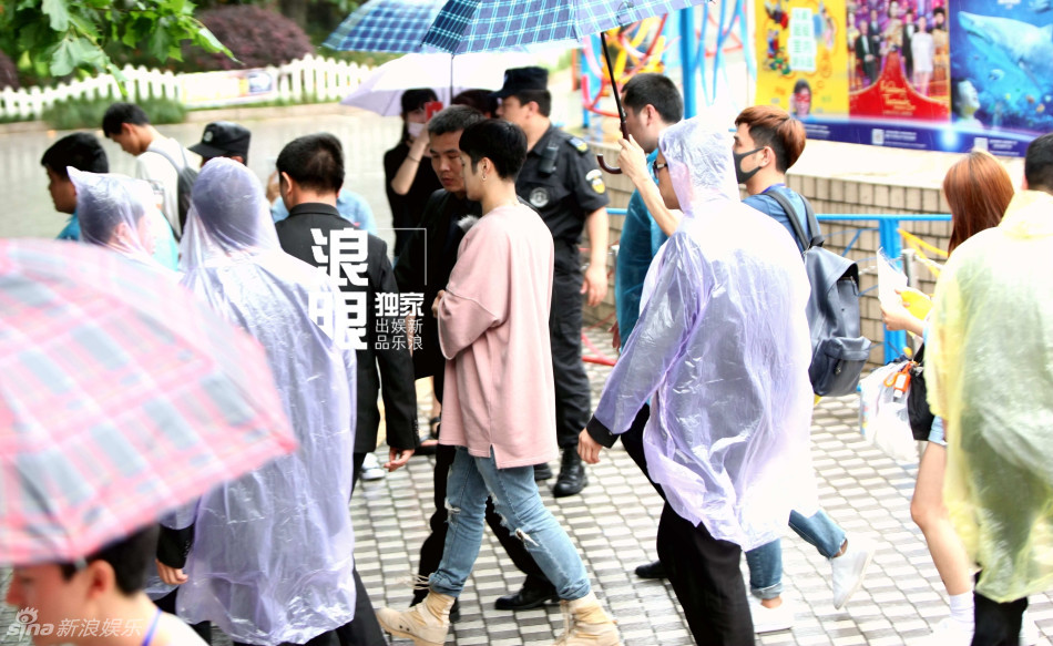 新浪娱乐讯 日前,王凯、王嘉尔、井柏然齐聚上海长风公园录制某综艺节目,然而场外由于不少粉丝围观,撤退过程中剧组却在瓢泼大雨中上演《奔跑吧!保安》。图文/文刀