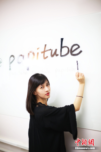 papi酱在团队papitube办公区进行首次直播 来源:papi酱团队宣传人员提供