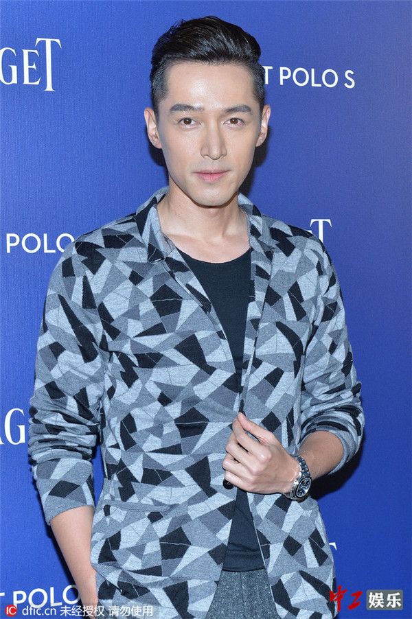 胡歌为品牌活动站台 菱纹灰蓝色西装表情僵硬(组图)