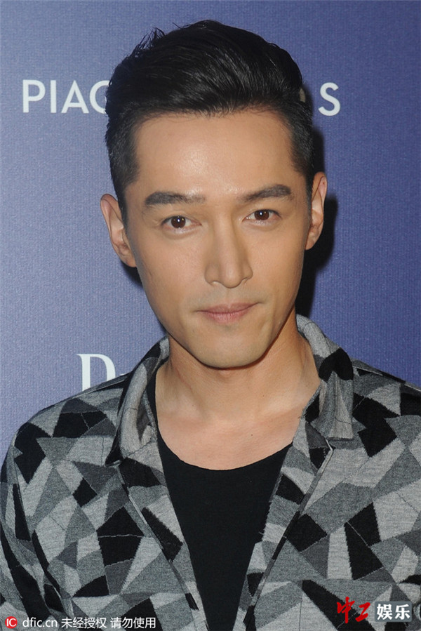 胡歌为品牌活动站台 菱纹灰蓝色西装表情僵硬(组图)