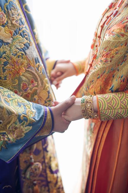 陈晓告诉记者,北京的婚礼之所以选在雁栖湖举行,是因为“雁栖”和“妍希”谐音,“我当时来到这里,一看就觉得很喜欢。我知道妍希希望婚礼能靠海,会更浪漫,虽然现在是湖,但景色很美,也是靠着水,我觉得她会喜欢。雁栖和妍希,感觉是一种很奇妙的缘分。”图为:执子之手,与子携老。