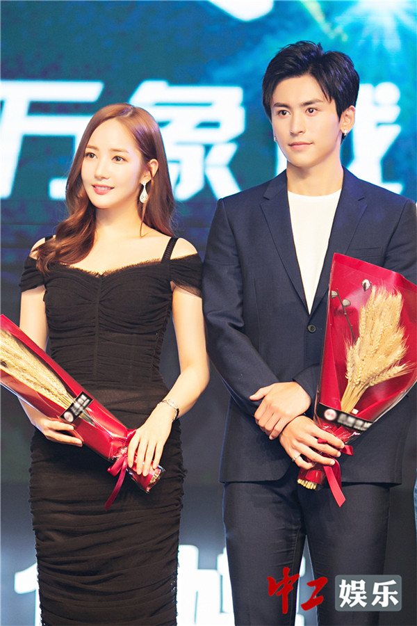 张哲瀚朴敏英亮相发布会 二人私下互动亲密