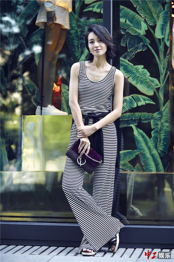 中工娱乐7月26日报道 朱丹演绎夏季最时尚街拍,身着黑白条纹连身裤,知性大方,阔腿的设计更突显出其大长腿优势。
