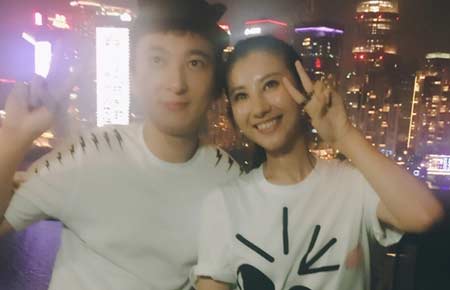 郑伊健夫妇恩爱逛超市 妻子变瘦玩捉精灵