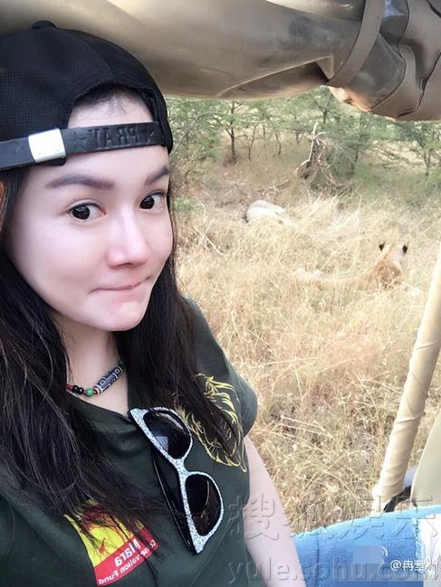 邹市明一家四口游非洲 与狮子比赛秀恩爱(组图)