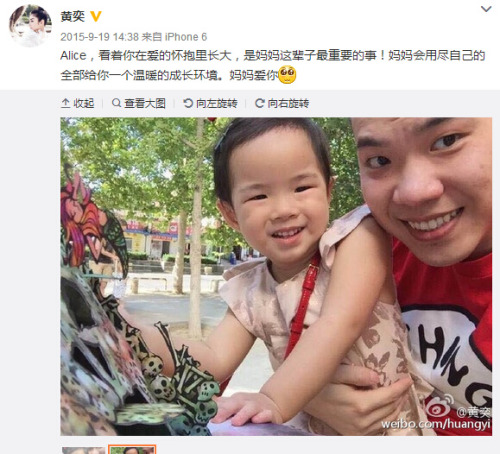 黄奕女儿与前夫合影 来源:黄奕微博截图