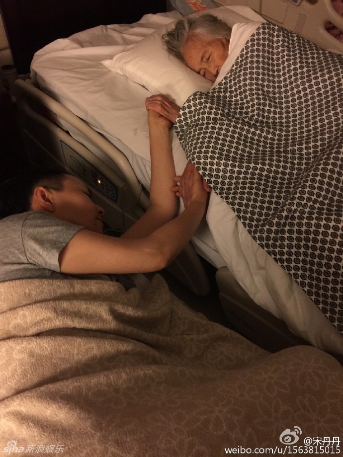 新浪娱乐讯 22日凌晨,宋丹丹微博发图并配文:母亲生命垂危,不知何故唯有拉着手才睡得踏实安稳,我便这样拉着~我也踏实安稳~