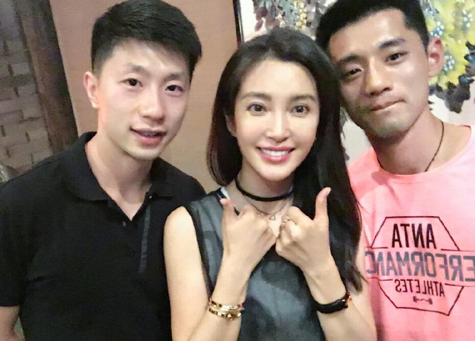 李冰冰与国乒队聚餐合影 被张继科搭肩