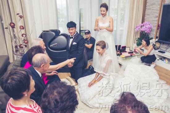 何润东台北婚礼迎亲照曝光 新人含泪跪谢长辈