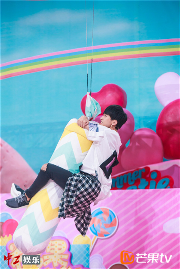 而在本期全新引入的游戏环节——谁是脑力王之“糖果猜猜猜”游戏环节中,易烊千玺搭档甜心,智力、体力齐上线。在完成“你描述、我猜词”考验的同时,还需紧抱住悬在半空中的“糖果”。在某个答题环节,碰到即将脱离半空中的“糖果”时,易烊千玺奋力向上一跃相当帅气的一幕也当即引发了现场迷妹们的尖叫声。