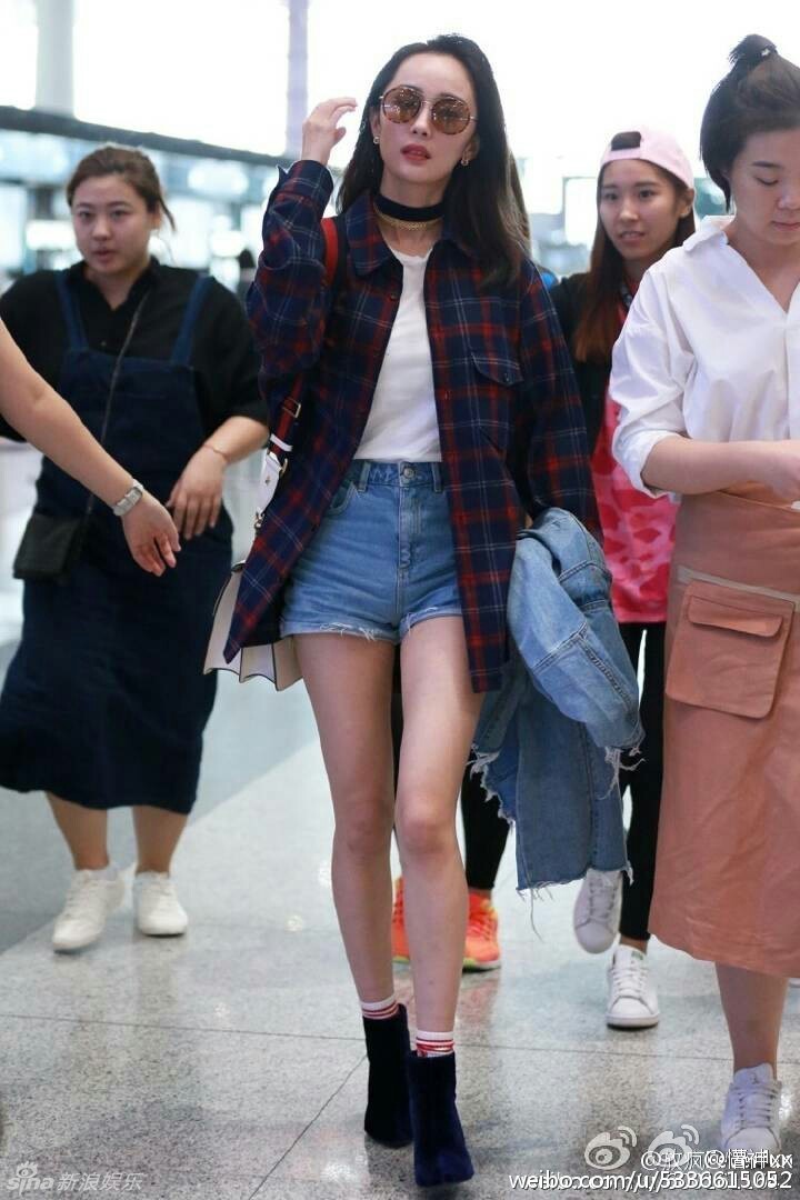 新浪娱乐讯 北京,9月25日,杨幂身穿格子外套和热裤现身首都机场,美腿纤细,脖子戴金链和choker潮翻。
