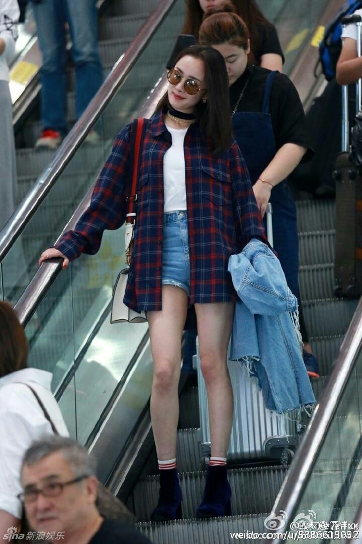 新浪娱乐讯 北京,9月25日,杨幂身穿格子外套和热裤现身首都机场,美腿纤细,脖子戴金链和choker潮翻。