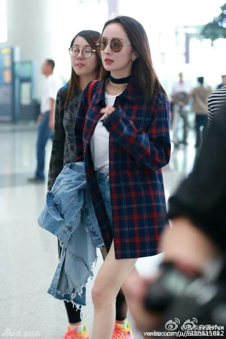新浪娱乐讯 北京,9月25日,杨幂身穿格子外套和热裤现身首都机场,美腿纤细,脖子戴金链和choker潮翻。