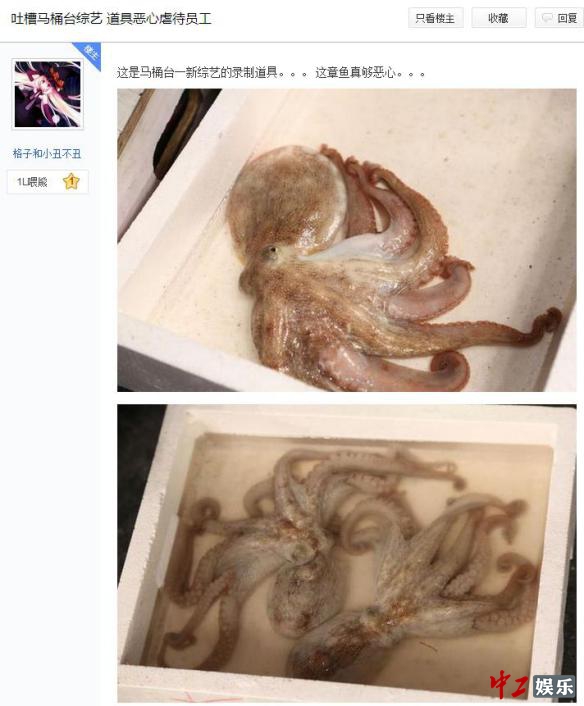 昨日有网友在贴吧爆料称,这档由芒果TV自制的节目号称史上最无聊综艺,节目将在国庆7天播出。届时会呈现一场史上从未出现过的人蝇大战。爆料网友称自己的朋友在《功夫小蝇》节目组实习,因节目准备的道具太恶心,工作环境太差,准备辞职。从该网友曝光的图片中看到,该节目的道具大都是活章鱼、蜥蜴、还有面包虫。节目制作现场也是相当的简陋,很难让人想象到节目播出的效果。有一个叫“西瓜姐”的工作人员还因节目需求吃大量大蒜狂吐不已,真是不容易啊。节目的形式则是选手打苍蝇,在规定时间内打死一定数目的苍蝇才算过关,失败就得接受惩罚。