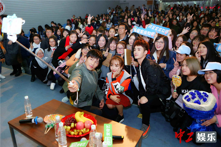 见面会期间,杨蓉与学生互动默契十足,你划我猜环节力压韩神和小篆,轻松胜出。表演环节反串男生,演绎周小篆,秒变逗比,不少学生表示被杨蓉的可爱圈粉。
